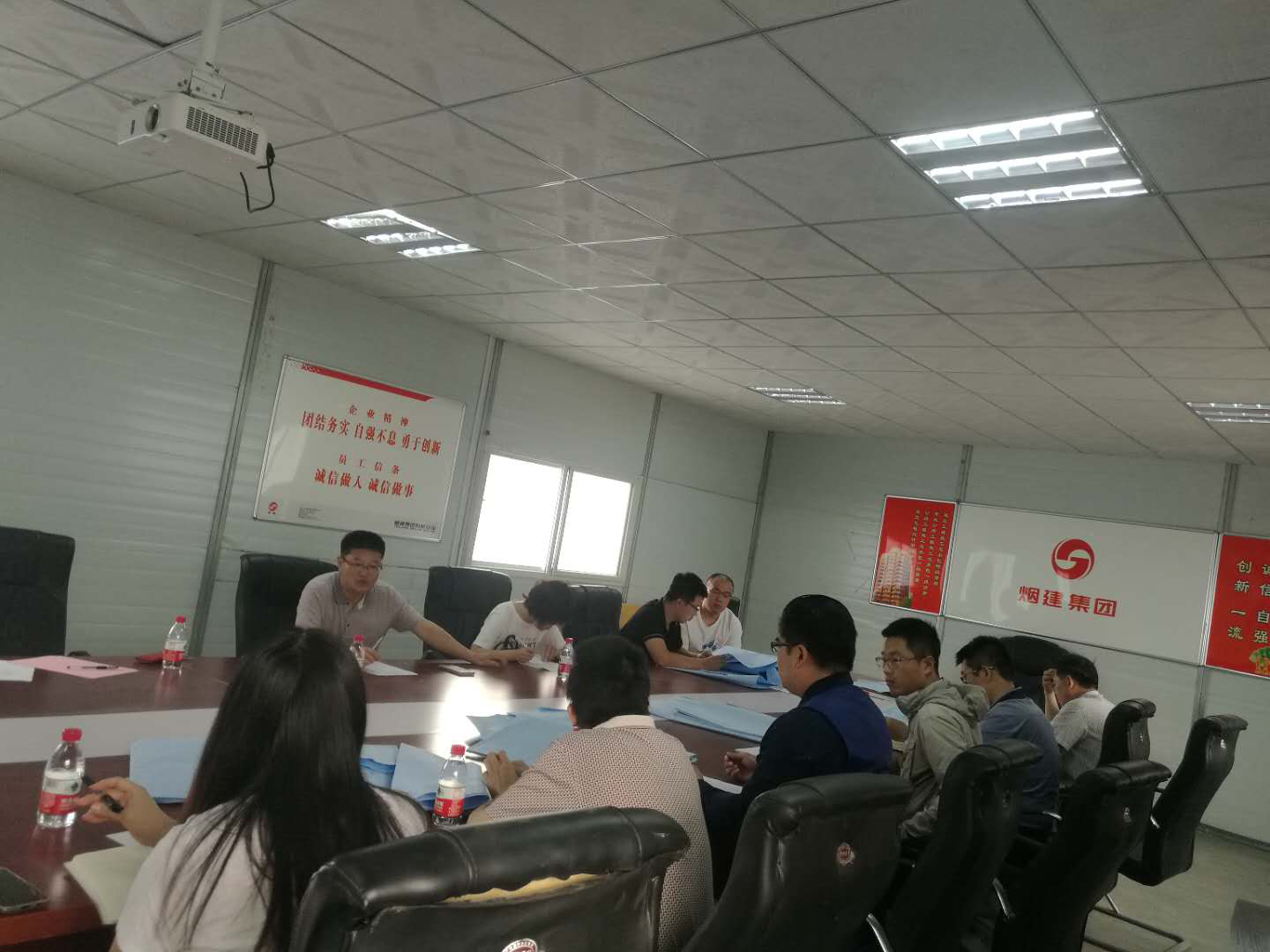 6月1日上午,基建处组织山东联创建筑设计有限公司、山东省高校基建咨询服务中心、烟建集团有限公司相关人员,召开了9号学生公寓项目施工设计图纸会审会。图审会由基建处副处长宋旭东主持,参会各方结合设计图纸就所负责的工作,与设计人员进行分组分项论证,就相关问题达成了一致。