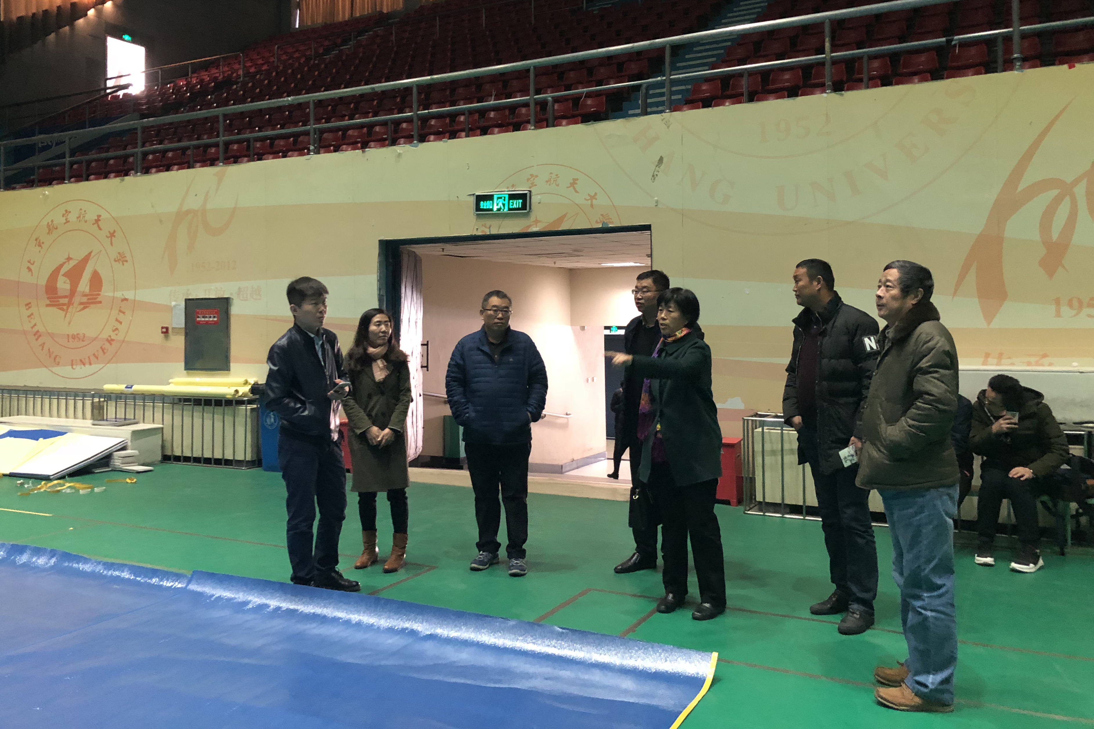 北京航空航天大学宣传部、文传集团有关领导热情接待了考察组一行。在座谈会上,双方就体育场馆等的建设与运营展开了热烈讨论。座谈会后,考察组实地考察了体育馆、游泳馆。考察组还深入本科学生社区就宿舍设计、住宿安排、物业管理等进行了细致认真的考察。