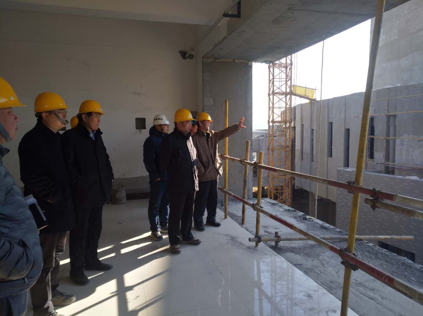 2018年1月12日上午,党委副书记、院长张书明,副院长高峰、陈雨海带领设备处、资产处等部门同志一行调研综合实验楼建设项目施工现场,学校基建办、山东省高校基建咨询服务中心(监理单位)及烟建集团有限公司(总包单位)相关人员陪同并做进度汇报。