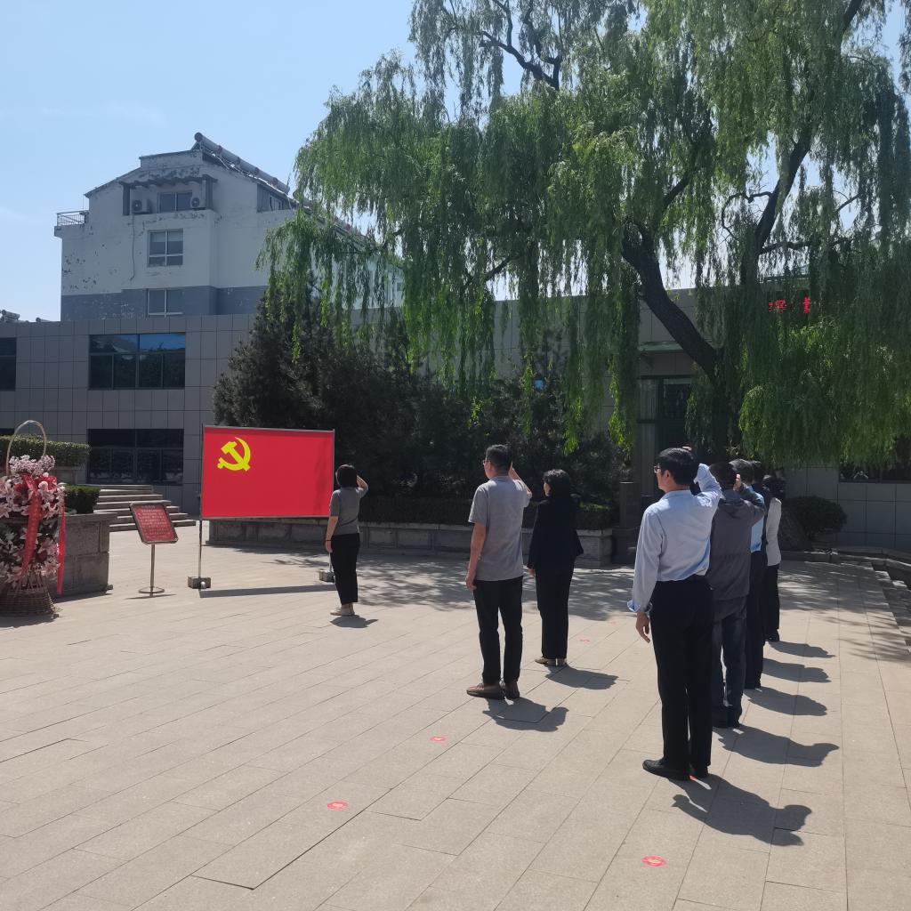 在焦裕禄纪念馆广场,全体同志向焦裕禄同志塑像敬献花篮,并在党旗和焦裕禄塑像前重温入党誓词,进行庄严宣誓。