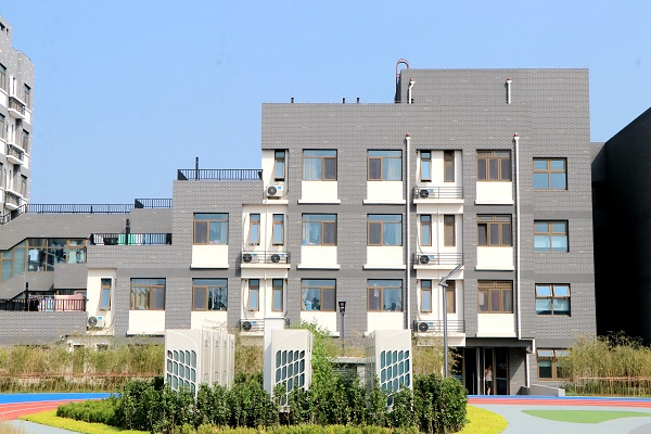 综合楼是集学生生活、用餐、休闲为一体的综合性建筑,地上2层,一层为室内体育用房,二层为学生餐厅,东侧退台部分为学生宿舍,投入使用后有效拓展了学生生活、运动空间。
